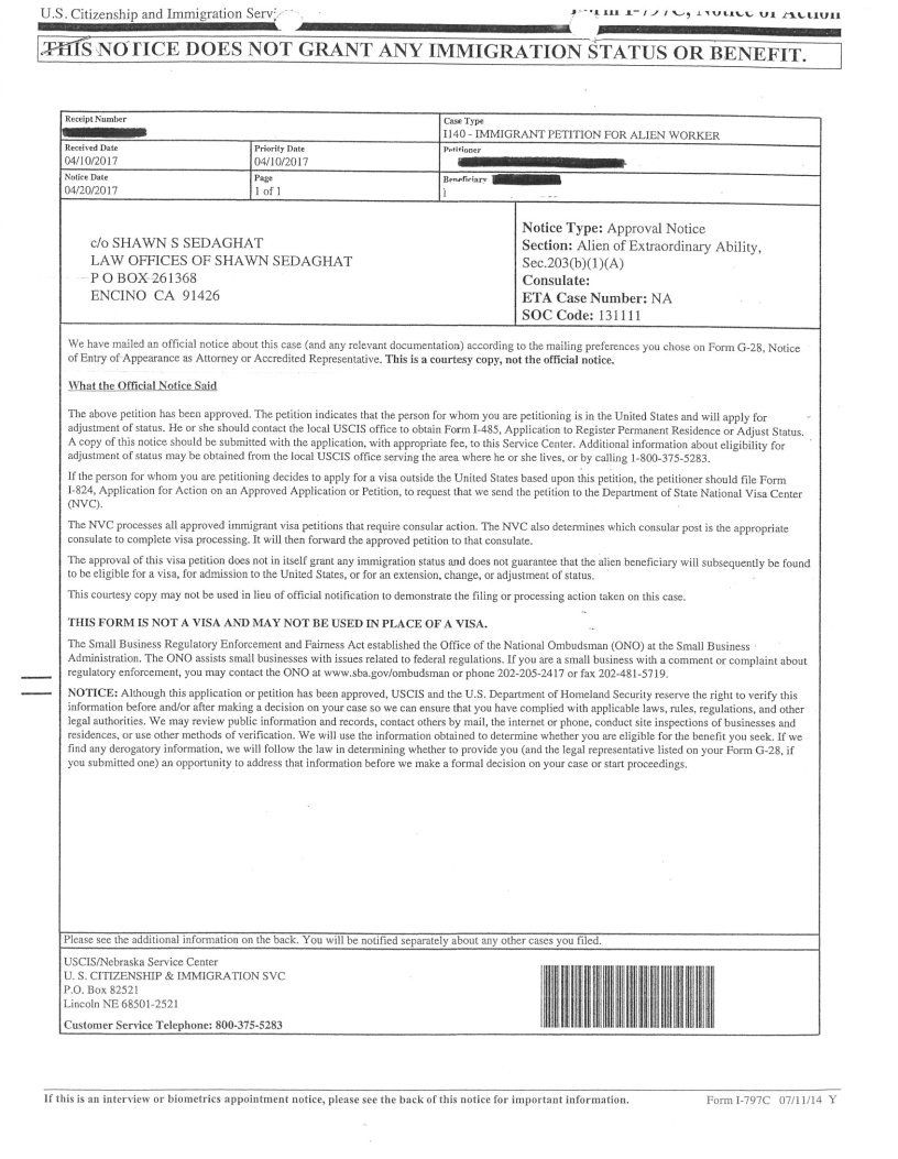 You are exceptional in your field and deserve exceptional service from us, and that is what you will receive. When you use our services, we do not simply gather your documents and send them for adjudication to USCIS. You are a part of our family of clients and will be treated as such.