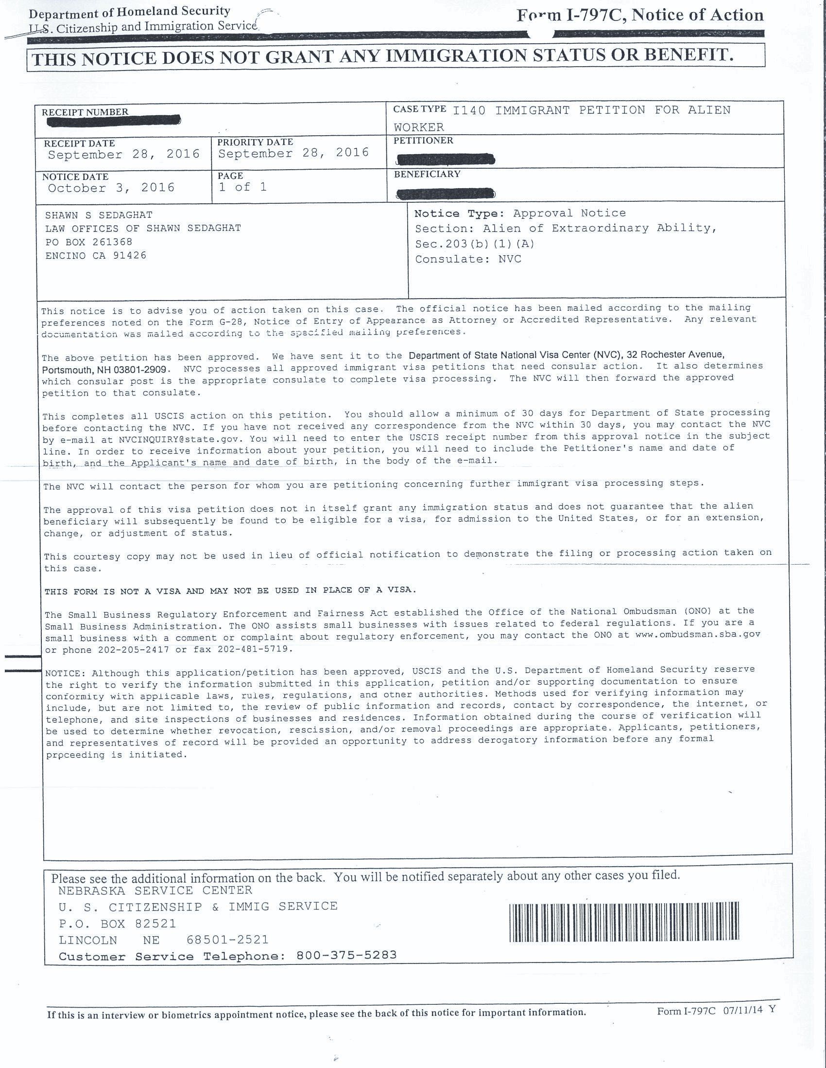 You are exceptional in your field and deserve exceptional service from us, and that is what you will receive. When you use our services, we do not simply gather your documents and send them for adjudication to USCIS. You are a part of our family of clients and will be treated as such.